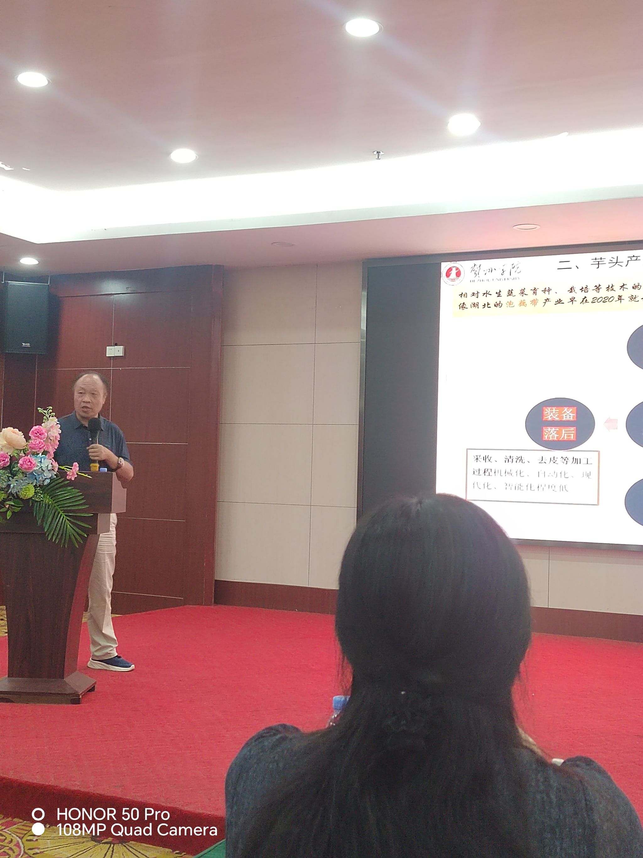 学院名誉院长、全国高校“双带头人”教师党支部书记、“强国行”专项行动团队负责人、广西康养食品科学与技术重点实验室主任段振华教授受邀作大会主旨报告。段教授以《科技赋能芋头产业升级与价值跃升途径》为题,系统解析了科技创新在推动芋头产业在精深加工与高值化利用领域的核心作用,重点展示了贺州学院依托广西康养食品科学与技术重点实验室和广西水生蔬菜保鲜与加工工程研究中心等核心平台在芋头保鲜技术、功能成分提取、健康食品创制等方面取得的关键科研成果及其在地方企业的成功转化应用案例。报告内容详实,兼具前瞻性与实操性,引发了与会专家学者的高度关注与热烈讨论。