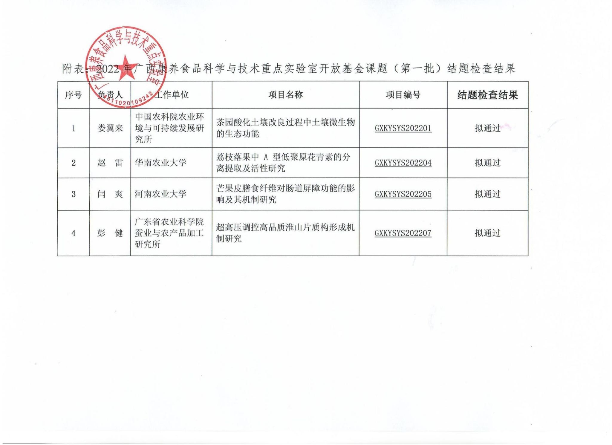 关于广西康养食品科学与技术重点实验室2022年度开放基金课题(第一批)结题检查结果公示